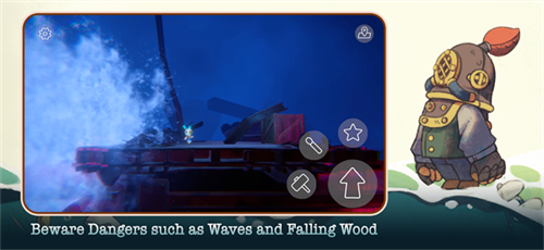 玩家需利用崩落木材搭建临时桥梁,躲避波涛冲击并推动可移动残骸开辟逃生路径。