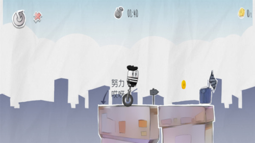 2、通过滑动屏幕左右控制独轮车的重心,保持车身平衡并在平台上平稳移动前行。