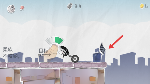 1、玩家要驾驶独轮车向前移动,在屋顶、山丘上前进,需要你一直保持平衡。