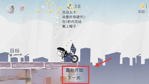 4、引导角色抵达终点处带有黑白格子旗的目标区域,完成关卡后查看奖励结算界面。