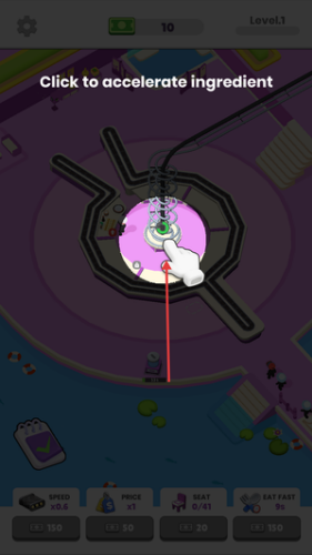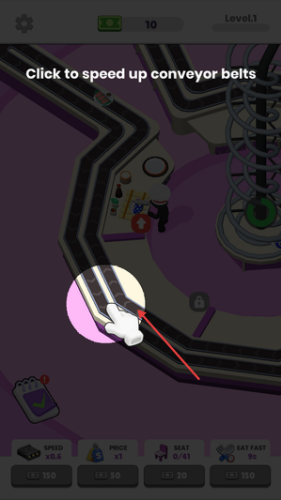 2、在制作菜品前,点击传送带装置,提升其运行速度,加快食材运输效率,减少等待时间,优化餐厅整体运作流程。