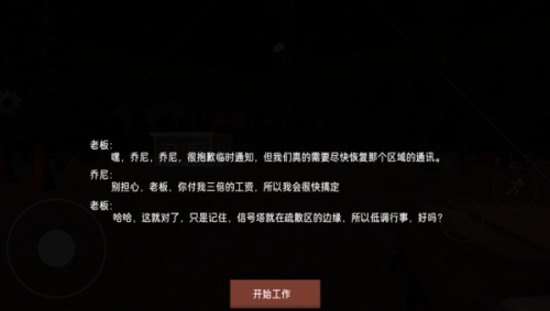 2、游戏开始之前,老板会对你说一些话,给你下达工作任务,阅读完后点击开始工作。