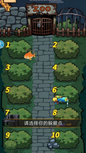 4、以动物园癫狂动物出逃为背景,玩家需利用场景道具隐藏身形,躲避动物追捕,主打紧张刺激的躲猫猫体验。