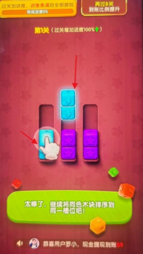 3、玩家可不用担心操作问题,每次简单尝试,那么就能将方块成功消除掉。