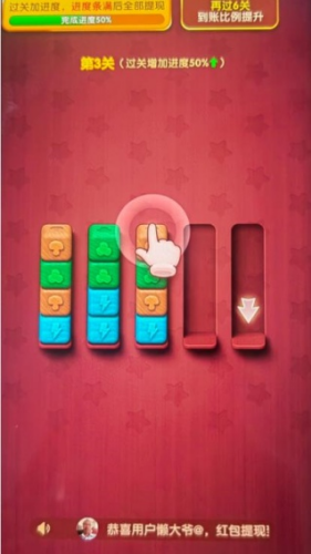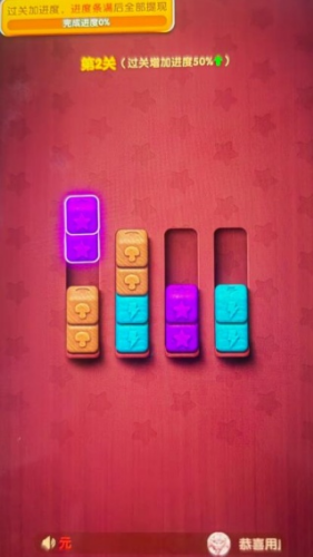 3、不断闯关闯关挑战,将更多的同色木块放置到一个槽子里面,最终通过关卡。