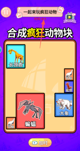 1、我们主要通过点击,将两个相同的动物块进行合成以及升级。
