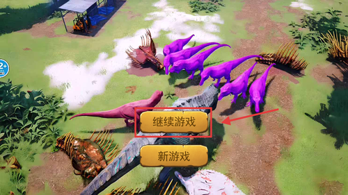 1、点击继续游戏可延续之前的生存进度,快速重返恐龙岛开启冒险,无需重新探索初始区域。
