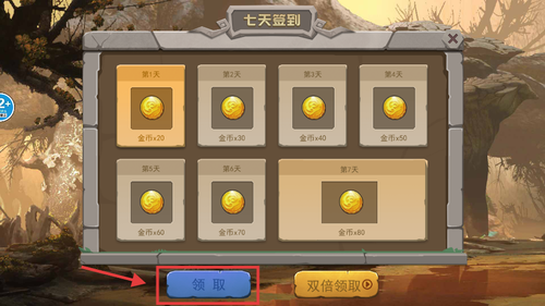 4、在七天签到界面点击领取获取金币奖励,用于升级恐龙能力或扩建基地提升生存保障。