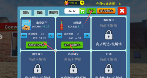 1、玩家可以自由采购商品并调整货架,确保超市库存充足。
