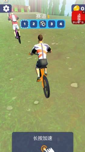 1、登录进入游戏,选择一条赛道,点击长按就可以加速行驶,冲在其他骑手的前面。