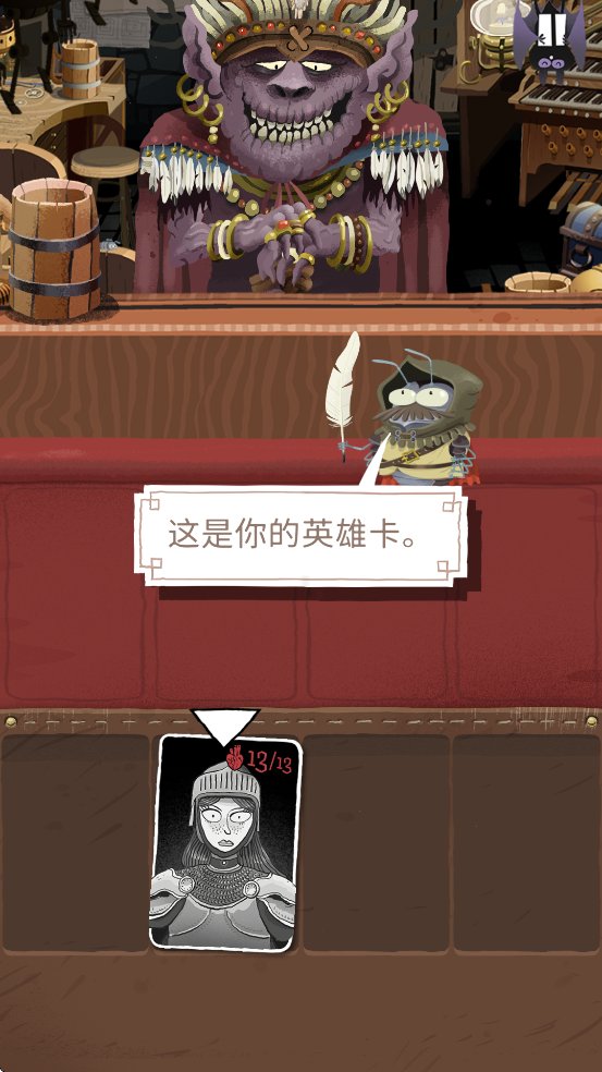 屏幕下方的卡牌为你所拥有的,你的英雄有13点生命值。如果生命值归零,游戏就结束了。
