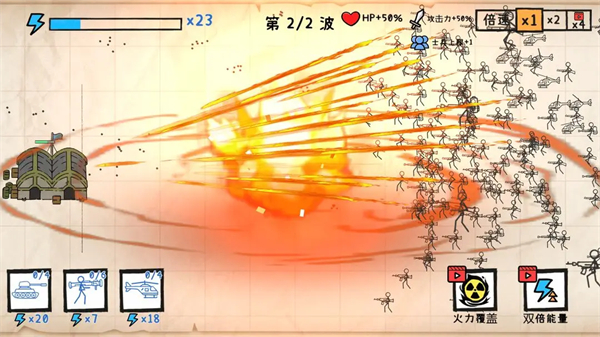 2、火力覆盖技能冷却5分钟,清屏但会误伤己方单位。