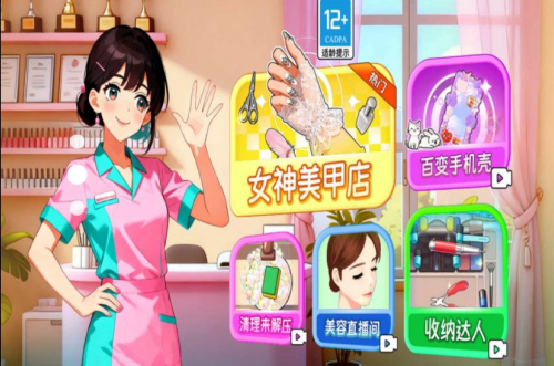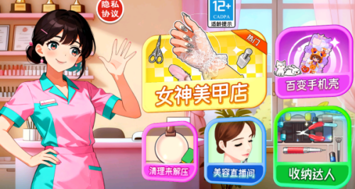 1、游戏包含了女神美甲店,百变手机壳、清理来减压和收纳达人等玩法。