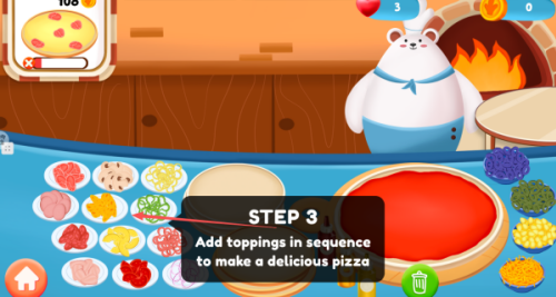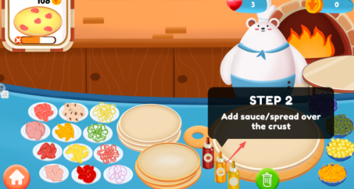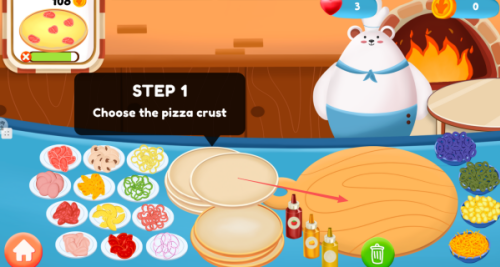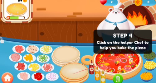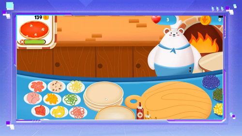 4、击右侧的厨师熊,让它帮助烘烤披萨,完成披萨制作的最后一步。