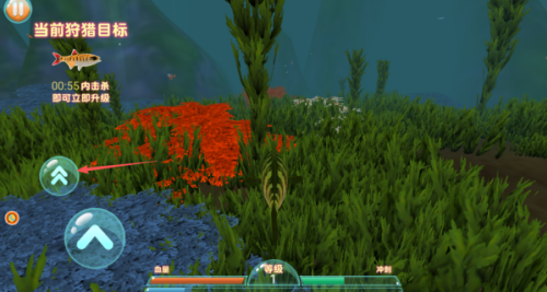 2、在狩猎过程中,点击左侧的加速按钮可提升鱼类的移动速度,更快地接近狩猎目标或躲避危险。