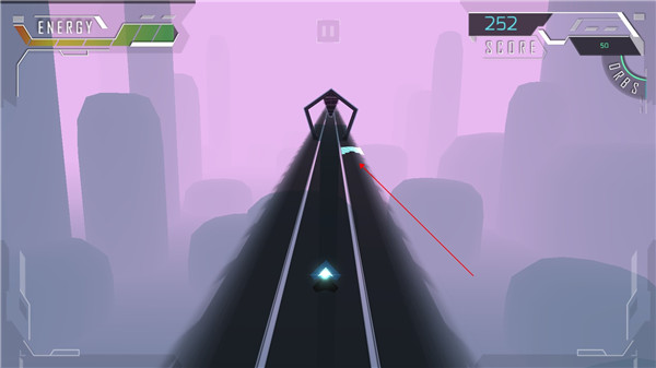 玩家通过点击和滑动屏幕来控制飞船的移动,左右移动控制方向,收集赛道上的光点可获得积分加成,经过加速箭头时会大幅提升速度,但需提前预判避免失控撞毁。