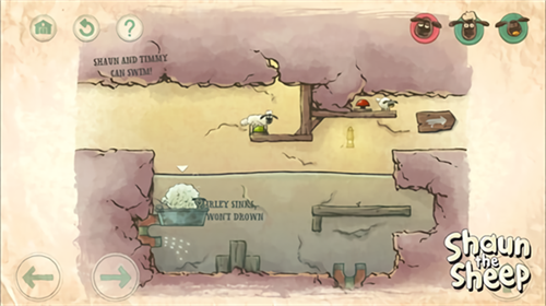 5、第五小关,首先控制肖恩来到右边的屋子收集蛋糕,然后用雪莉把柱子撞倒,这样提米与雪莉羊都可以轻松的到达出口了,中间的袜子可以用雪莉垫一下肖恩很容易取得。