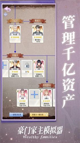 豪门家主模拟器免广告版是一款深度还原豪门世家兴衰历程的沉浸式模拟养成游戏,游戏里玩家将扮演百年望族的掌舵者,在错综复杂的利益网络中把握商机与人心,游戏中的时间跨度长达数十年,玩家需要统筹三代人的发展轨迹,既要在商业领域开疆拓土,投资新兴产业获取超额回报,也要在社交圈层长袖善舞,通过慈善晚宴、私人俱乐部等场合拓展人脉。豪门家主模拟器免广告版游戏精心构建了完整的家族生态体系,从跨国企业并购到海外资产配置,从子女精英教育到政商关系维护,每个决策都将影响家族声望与财富积累,你可以通过联姻系统与其他名门缔结战略同盟,在古董拍卖会竞标稀有珍宝提升社会地位,或是暗中扶持代理人掌控关键行业命脉。继承人的培养更是充满挑战,需要根据子女性格特长规划发展路径,是培养成雷厉风行的商界精英还是温文尔雅的艺术名流,都将决定家族未来的走向。