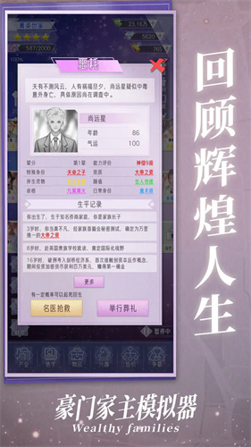 3、允许玩家自定义家主的形象、性别、性格等,打造属于自己的独特豪门家主形象。