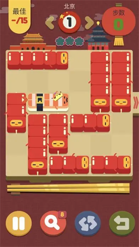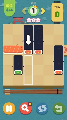 1、以萌萌的寿司为元素,依借经典的华容道玩法。