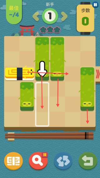 寿司华容道免费版是一款把寿司和烧脑玩法巧妙合在一起的益智解谜手游,游戏里塞进了上千个精心设计的关卡,从轻松入门到让人抓耳挠腮的高难奇局,层层递进,越往后越考验逻辑与空间想象力,每关的目标很明确:用最少的步数,把主角寿司送到出口,听起来容易?实际推两下你就知道,有时候差一步,就得重来十次,不过别急,实在卡壳也不用硬扛,系统贴心准备了提示道具,一点就能给你演示最优解了。不管是通勤路上打发时间,还是睡前放松练练脑力,寿司华容道免费版这款游戏都能给你恰到好处的挑战和乐趣。游戏画面清爽、节奏轻快,还带着点日式小清新味儿,玩着不累,反而越推越清醒。如果你喜欢动脑又讨厌千篇一律的消消乐,那这款游戏绝对值得一试。