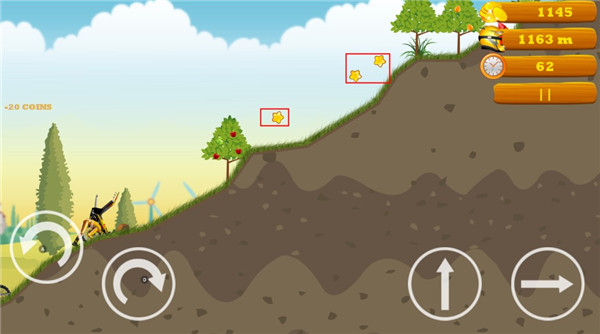 3、左边的按键可控制摩托车翻转,右边按键是跳跃和前进