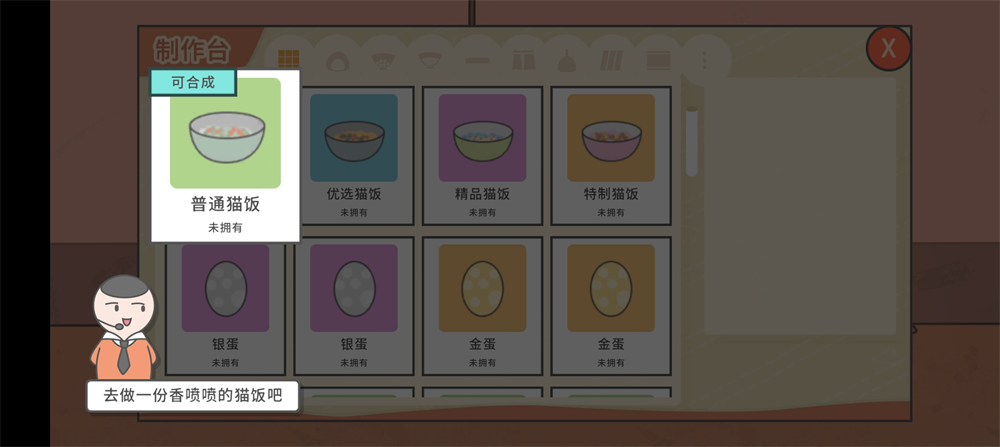 5、玩家还可以通过工作台自己制作猫粮