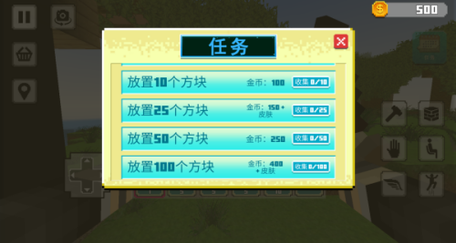 3、你是有任务的,刚开始的时候需要放置10个方块,获得100金币奖励。