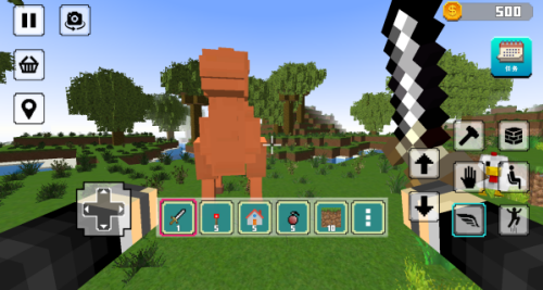 2、利用虚拟摇杆操控着角色在立方体世界中自由建造和破坏。