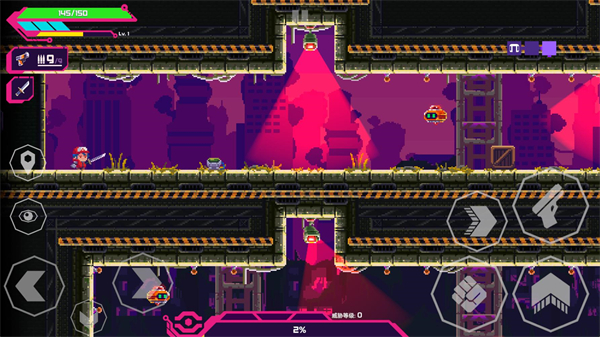 3、击败敌人可获取经验与金币,但被摄像头发现会提升警戒度,引来更多敌人。