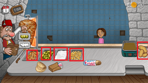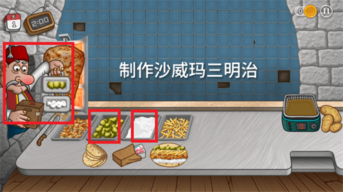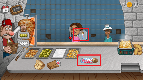 等待顾客前来,需要的三明治直接拉动到人物头像就完成她的订单了。