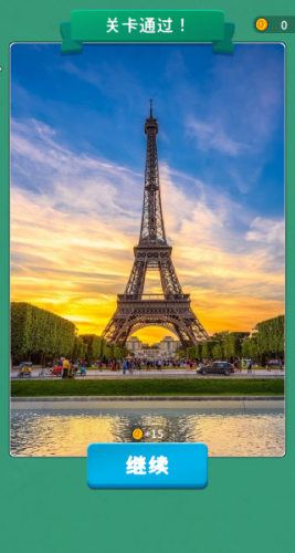 2、完成当前关卡拼图后,领取金币奖励并点击继续,解锁下一关新主题拼图,开启全新探索。