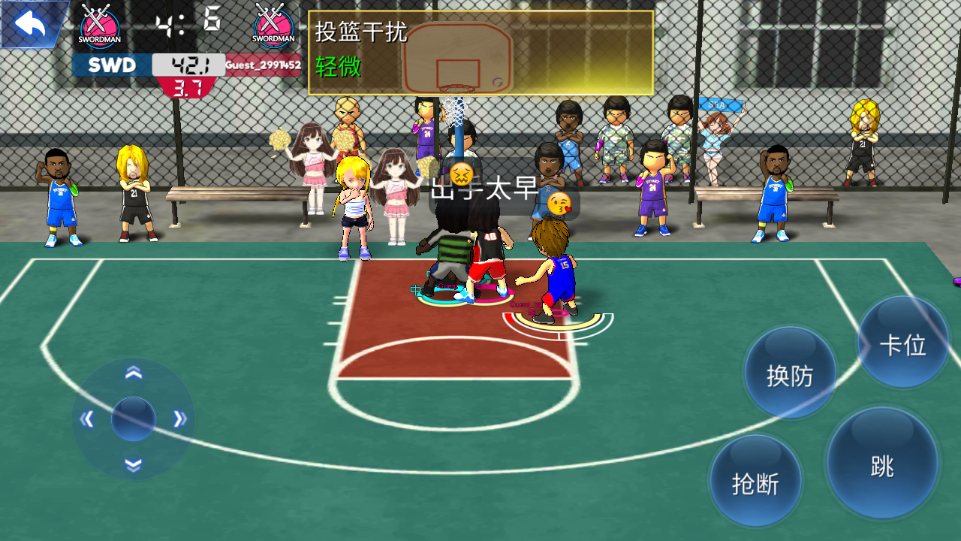 8、之后玩家就需要这些控键来干扰地方投篮,或者将自己将篮球投进去。