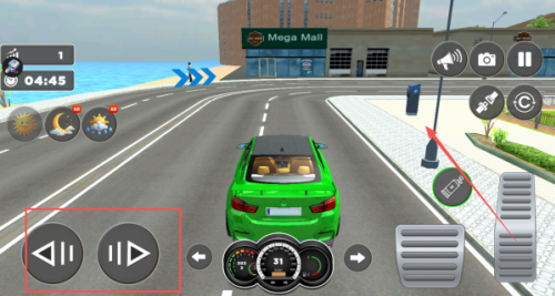 2、正式开启了游戏之后,我们通过左侧的左右的按钮控制方向,右侧则是油门和刹车。