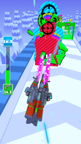 2、在这款游戏里,每个阶段都是枪林弹雨的战场,你需消除障碍、摧毁对手,凭借升级后的武器占据主导地位。