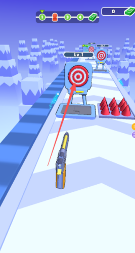 1、直接点击,控制着枪支不断的向前,然后需要去进行射击,不断通过障碍进行闯关。