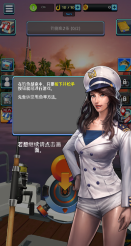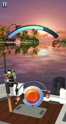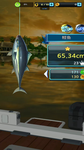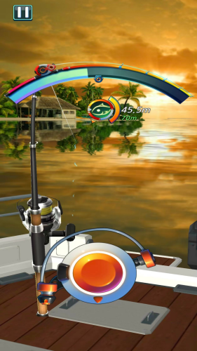 6、按动屏幕上的按钮就能够给鱼施加伤害,让鱼无法逃脱,你就可以轻松的把鱼给钓上来了,十分简单。