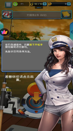 1、进入游戏后,你首先得学习钓鱼,按下箭头指定的箭头,然后甩鱼竿。