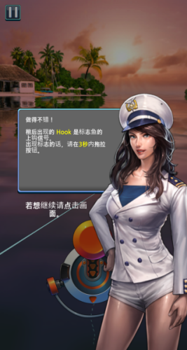 2、当你甩了鱼竿之后,稍后出现Hook之后,就标志着与上钩了,3秒内拉按钮。