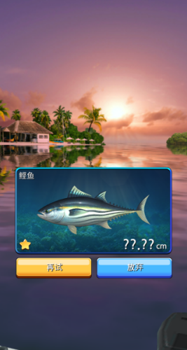 4、之后会显示出自己钓的鱼是鲣鱼,你可以再次尝试,还可以放弃。