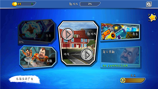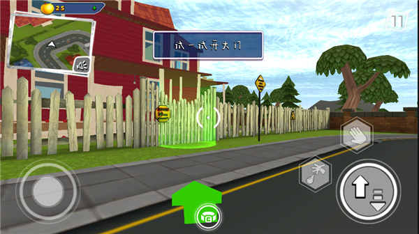 2、我们进入游戏当中,开局的第一局都是会被邻居抓住的,游戏里面也有好多小道具都可以用来对付邻居,滑动屏幕可以观看四周。