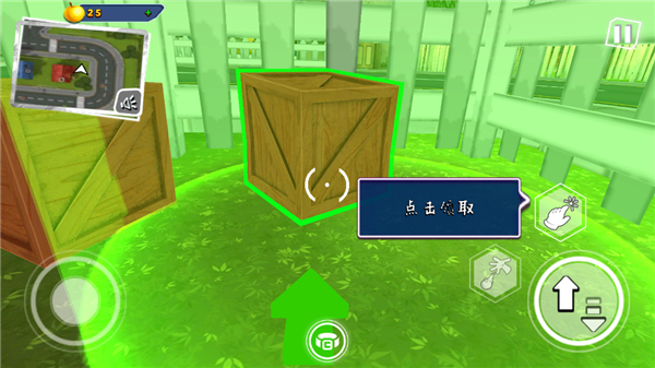 3、左下角轮盘控制人物的移动方向,右下角则为跳跃和工具。