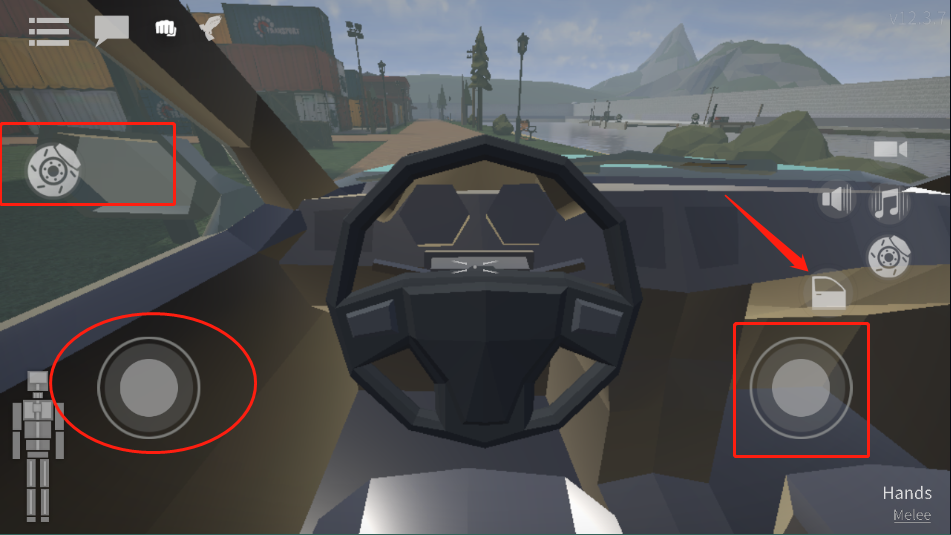 8、驾驶汽车时,长方形按钮为刹车,椭圆形为前进或后退,正方形为左右方向控制,点击箭头则可离开车辆;