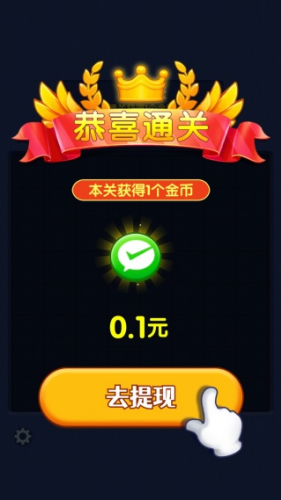 3、完成关卡消除任务,就能获得现金奖励,点击领取然后进入下一关卡进行挑战。