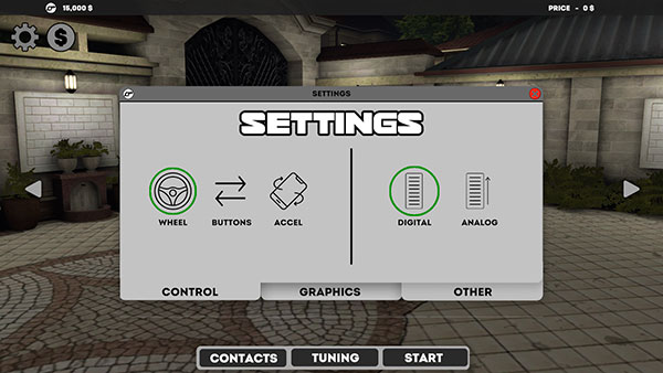 游戏支持多种驾驶操作模式,点击右上角的【设置】图标,可以在方向盘控制或手机晃动控制之间自由切换,选择最适合自己的操作方式。