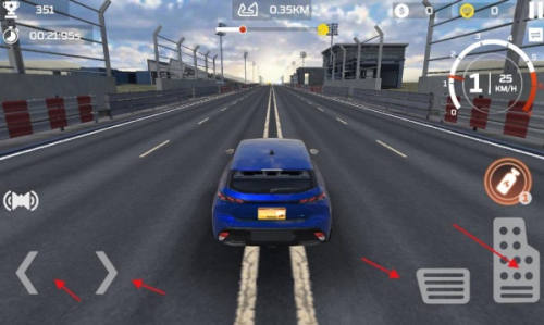 1、左右的两个按键控制赛车方向,右侧的控制油门和刹车,记得在马路中间行驶,速度会更快。