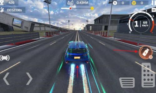 2、右侧的加速瓶非常重要,每一场游戏都有时间限制,加速瓶可以提升赛车速度。