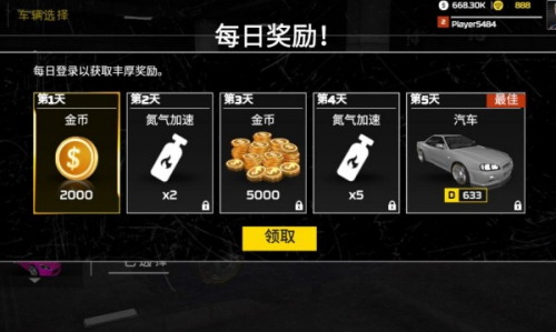 4、每日签到可以领取各种奖励物品,除了金币还可以获取氮气加速等道具。