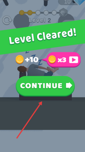 4、胜利后点击CONTINUE按钮进入下一关,通过反复练习提升投掷的准确性和反应速度。