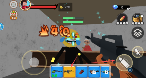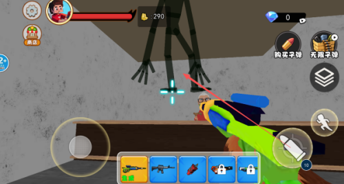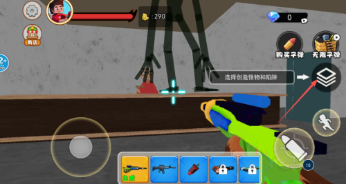 3、生成了怪物之后,怪物会对我们发起进攻的,需要将武器切换成战斗的武器去进行射击。